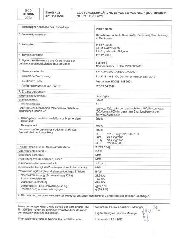 Der Prity NS26 ist ein leistungsstarker Holzvergaserofen mit integrierter Wassertasche, der effiziente Wärme und umweltfreundliche Technologie vereint. Mit einer Gesamtleistung von 28,9 kW (26,3 + 2,6 kW) eignet er sich ideal zur Beheizung großer Räume und ganzer Wohnbereiche.